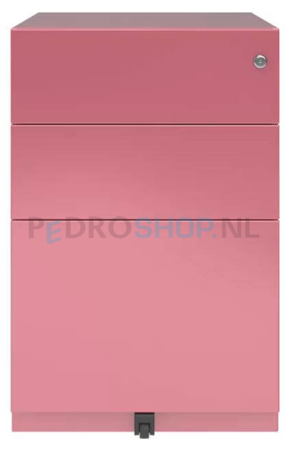 Ladenblok Bisley Basic met 3 laden, 65,2 cm hoog, 42 cm breed, roze, 80% uittrekbaar