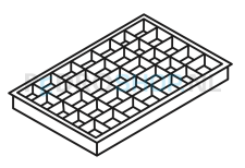 Deze inzetbak kent 35 gelijke vakken. De inzetbakken worden per set van 5 stuks verkocht. Deze 35-vaks inzetbakken kennen een hoogte van 2,2 cm en zijn geschikt voor de Bisley A4 meerladenkasten met alle lade hoogten.