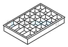 Deze inzetbak kent 24 gelijke vakken. De inzetbakken worden per set van 5 stuks verkocht. Deze 24-vaks inzetbakken kennen een hoogte van 5,1 cm en zijn geschikt voor de Bisley A4 meerladenkasten met lade hoogten 5,1 cm, 8,7 cm en 10,2 cm.